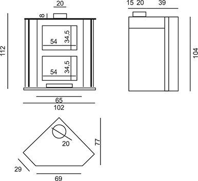 Salida de humos superior de diámetro 200mm